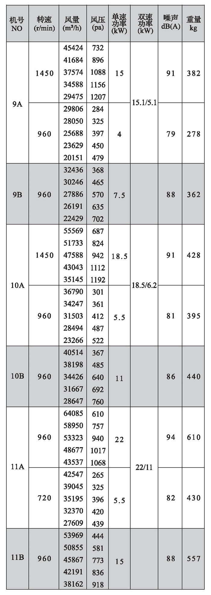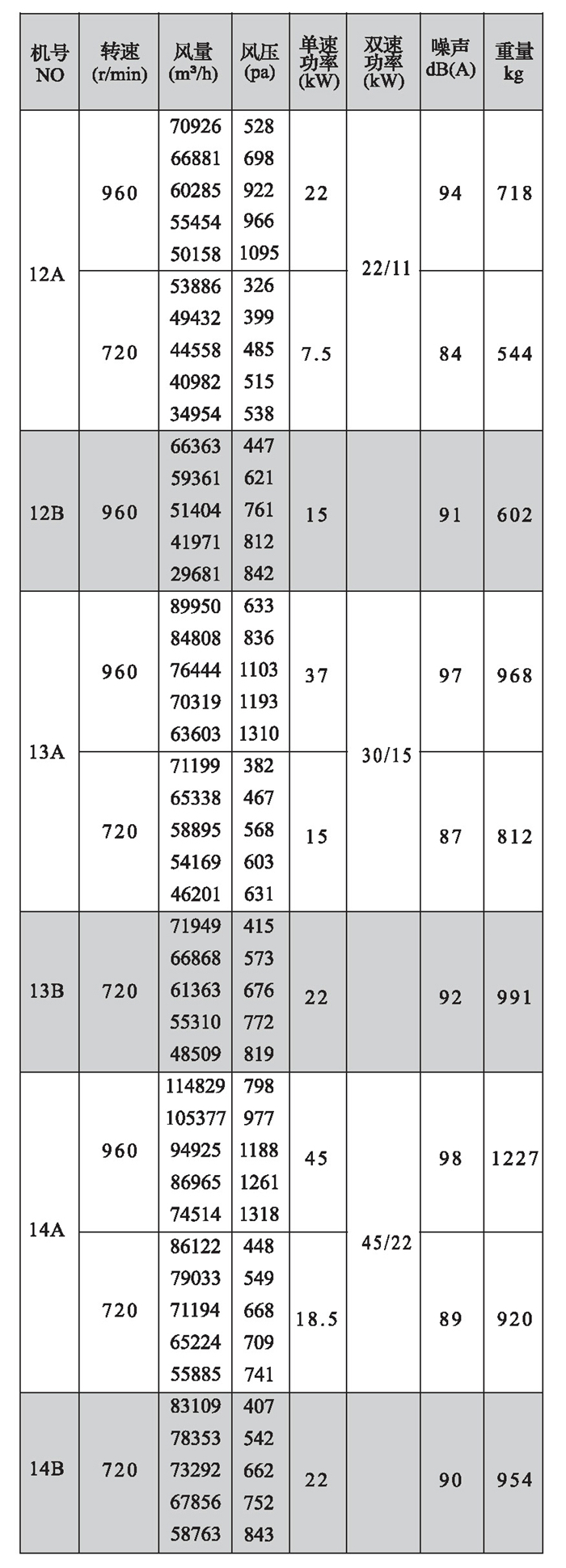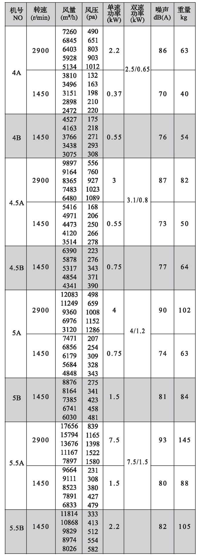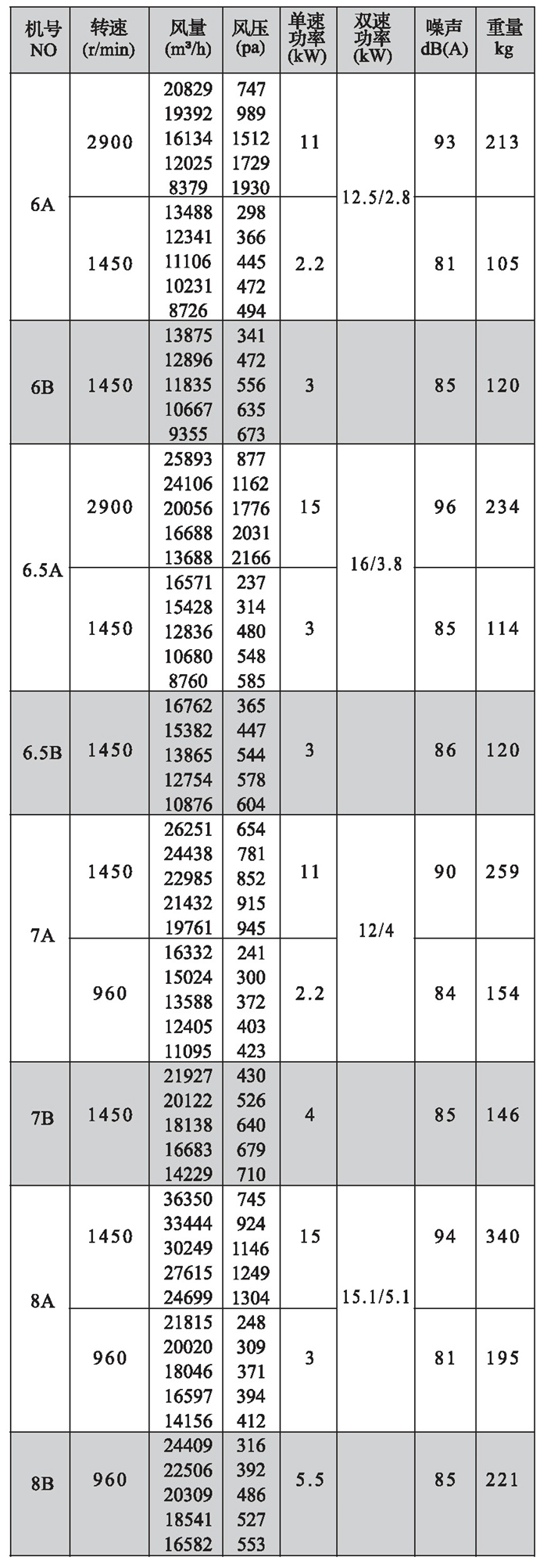 注:雙速風(fēng)機重量參考同號中高速風(fēng)機的重量。
