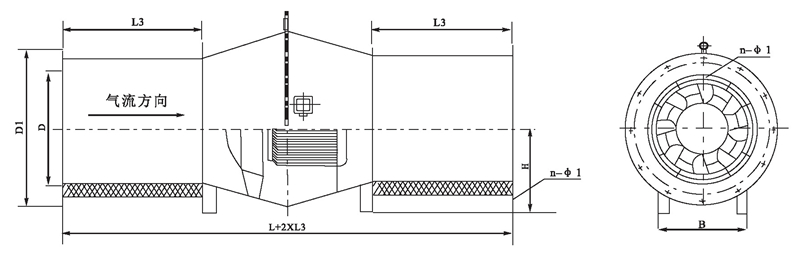 2.風(fēng)機出廠時法蘭一般不打孔n-φ1僅供參考,若要打孔請用戶在訂貨時說明。
