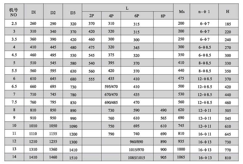注:1、為了同用戶的安裝尺寸保持-致,法蘭打孔尺寸(n-φ1)僅供參考,若用戶沒有說明,本廠一般不打孔