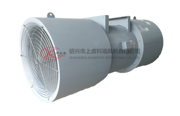風機工作時,能從給定的能量中,產生較高的推力。這時流經隧道的總空氣量的-部分被風機吸入,葉輪做功后,由出口高速噴出。基于沖擊傳動的原理,高速氣流將把能量傳給隧道內的空氣,推動隧道內的空氣一起向前流動。當流動速度衰減到某一值時,下一組風機繼續工作,這樣,實現了從隧道進口端吸入新鮮空氣,從出口端排出污染空氣。
